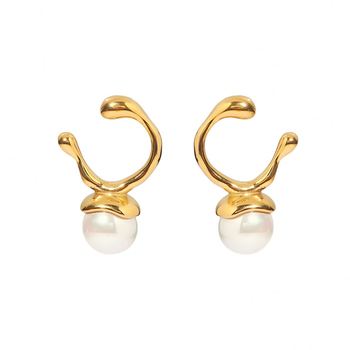 Pendientes de perlas de acero inoxidable a la moda Irregular en forma de C Stud 18K PVD chapado en oro impermeable fábrica de joyas