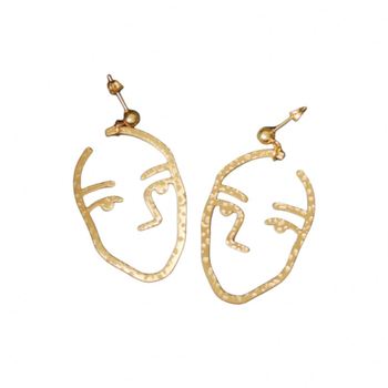 Pendientes abstractos huecos de Cara Humana, diseño creativo, retrato de acero inoxidable, pendientes largos, Pendientes grandes