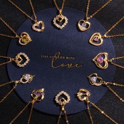 Ciondolo con paillettes in polvere a forma di cuore colorato a forma di cuore catena bella collana placcata in oro per matrimoni