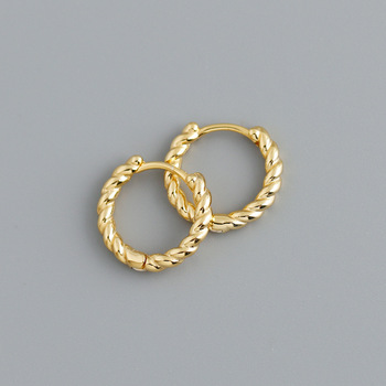 새로운 클래식 심플 스타일 골드 925 스털링 실버 라운드 트위스트 서클 후프 Huggie 귀걸이 여성용