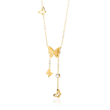 กลวงออกสแตนเลสเครื่องประดับโซ่พู่สร้อยคอผีเสื้อเพทายเครื่องประดับ18พันชุบทองผีเสื้อจี้สร้อยคอ