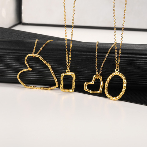 ไม่จางหาย18พันทองชุบสแตนเลสหัวใจเครื่องประดับวงกลมที่ผิดปกติสร้อยคอจี้ออกแบบเครื่องประดับ